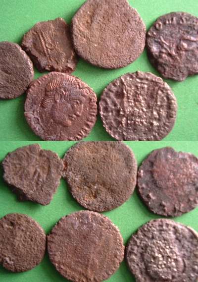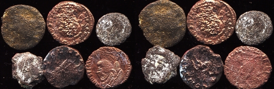 I believe that the coins were cleaned using electrolysis with salt; but the seller wouldn't tell me exactly how- it's a family secret. Anyways, these show a good reason not to remove the patina of coins. Of the approximately 100 coins, I would guess 30 are showing BD presently. As far as I'm concerned, all the coins are prone to BD, and I'll treat them all.
