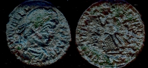 Deller's darkened the coin up some, but not as much as some. It probably is due to the partial patina; and works better on bare metal. After applying to the reverse, it looks like I was off. It seems to be one of those coins with the emperor and two captives left, bust left holding globe.