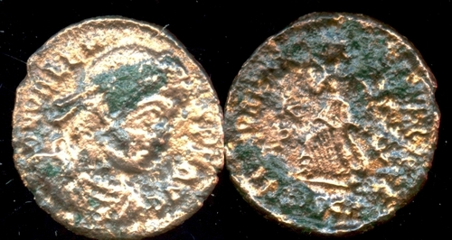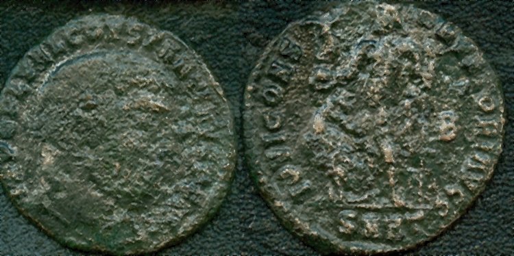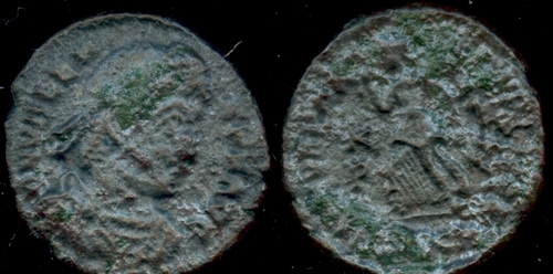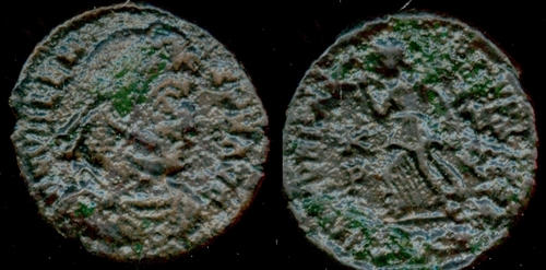 The coin is a bit porous (best seen on cheek) and has some encrustations on the reverse that are resistant to grinding. I was able to remove some with a diamond dipped ball-pin (you can see some scratches there between Constans and Victory, which was the ball going just a bit too deep, but that part came off decently). The rest of the encrustations just refuse to yield, so I decided to leave it. The diamond dipped ball is my weapon of choice on encrustations on coins that I'm not going to zap. If the coin was patina'ed, it most likely wouldn't have scratched through.