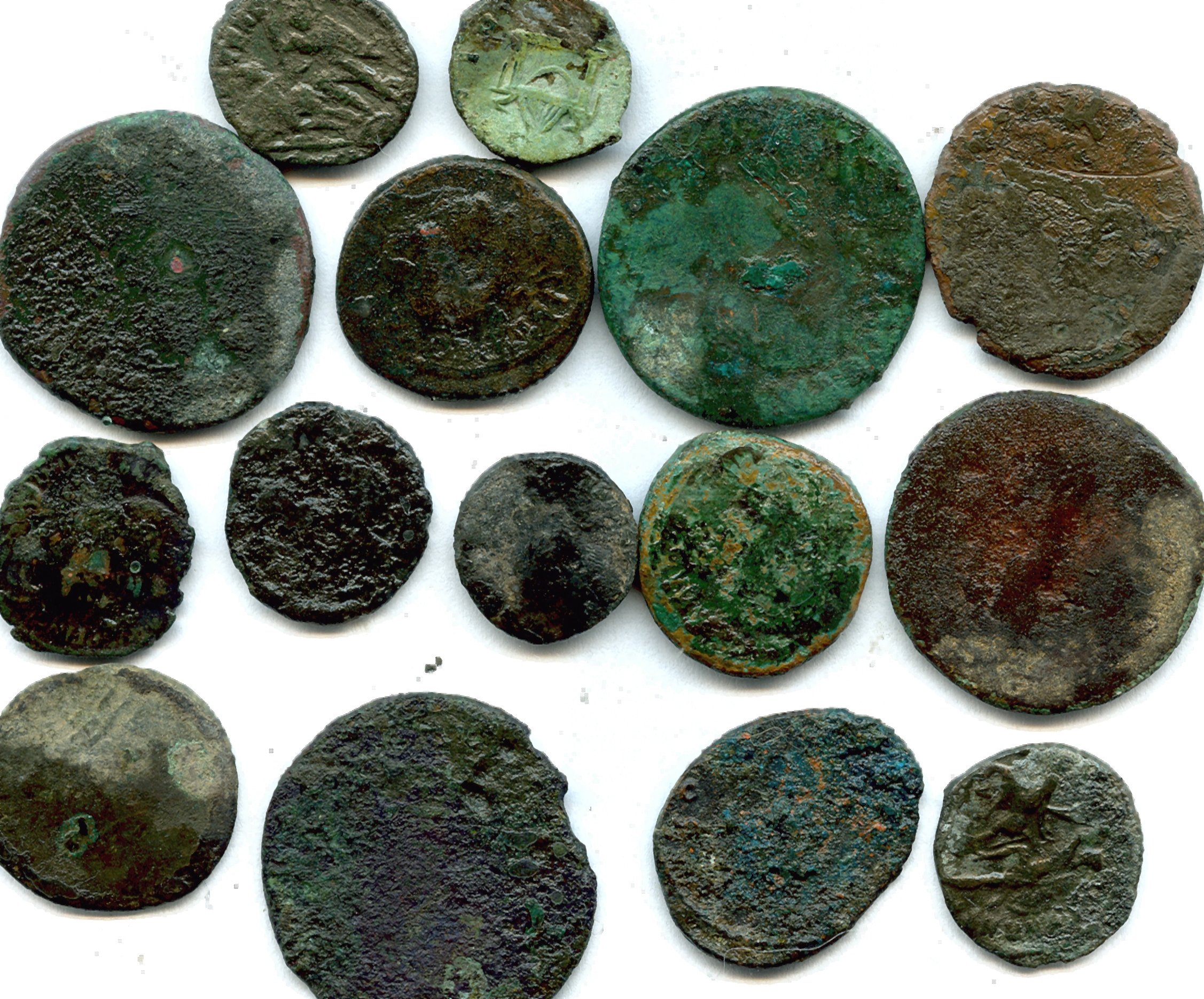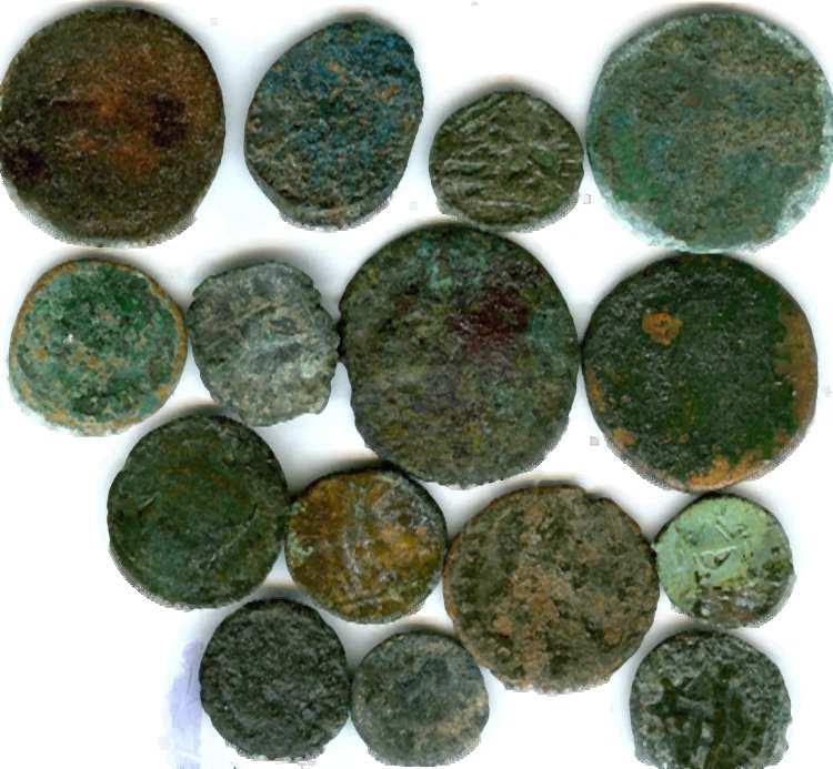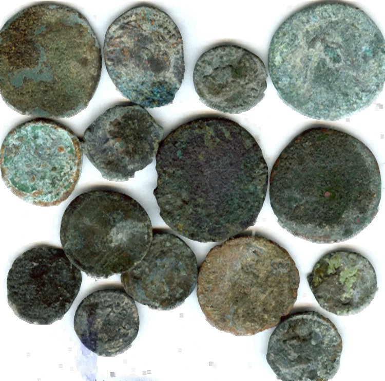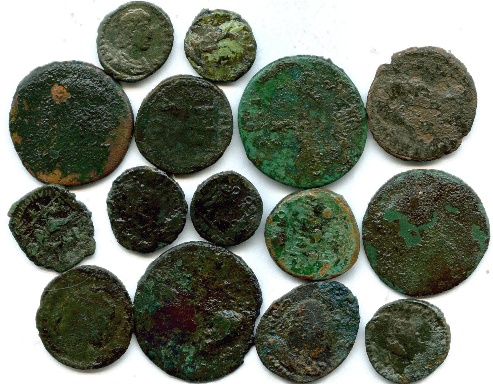 The coins that I pulled seem to include a good spectrum of variations. They have false patinas, partial patinas, a couple different encrustations, compact clay to rich mud... it should be a good test of a good representation of uncleaned coins.