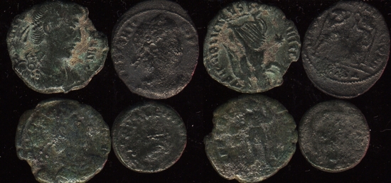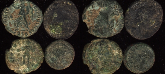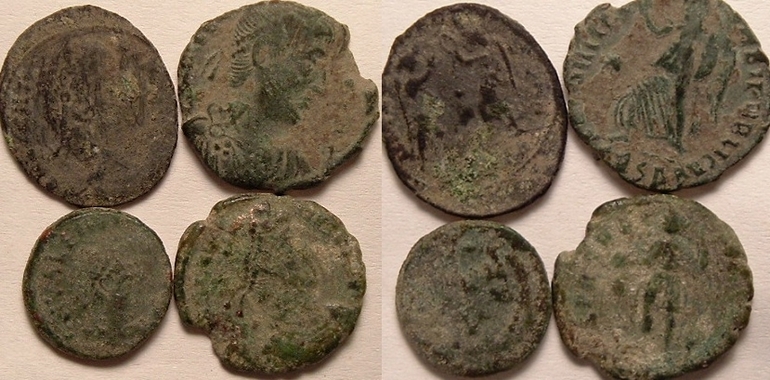 Here's 4 more coins for this experiment. These are "premium" coins that I just received, they have decent details but a good amount of dirt on them as well. They are as received- not brushed or soaked.