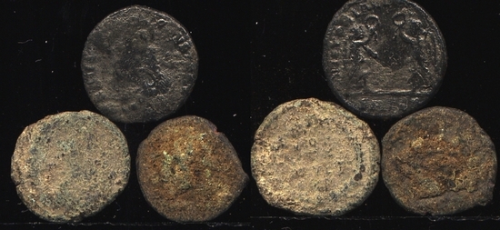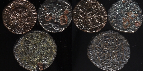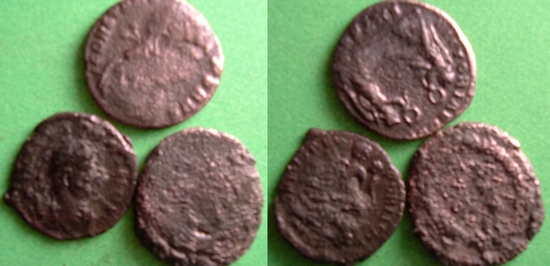 The Vics is pretty much totally stripped (though readable), the VOT is porous/ugly and most of the patina came off, the encrusted coin ended up being a Salvs Reip. Most of the encrustation came off without any effort at all... and I mean none. I spent less time on the encrusted coin than either of the others. It just wiped off. There is still some encrustation on the coin, since most of the patina has already come off (if it had patina to begin with) I'm just throwing it back in.