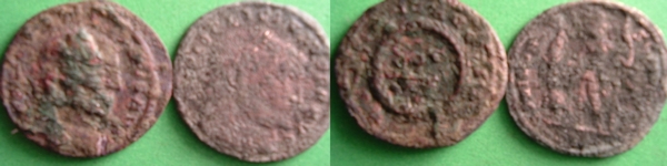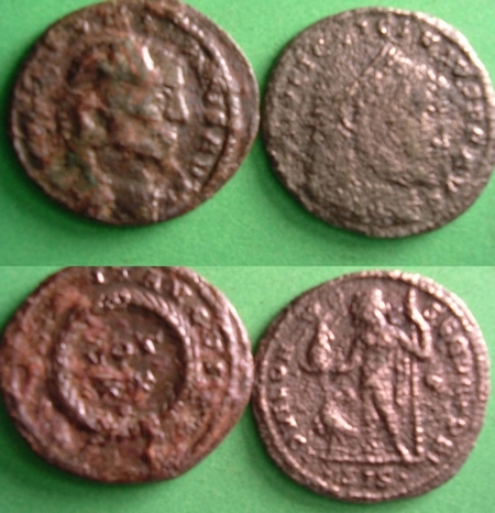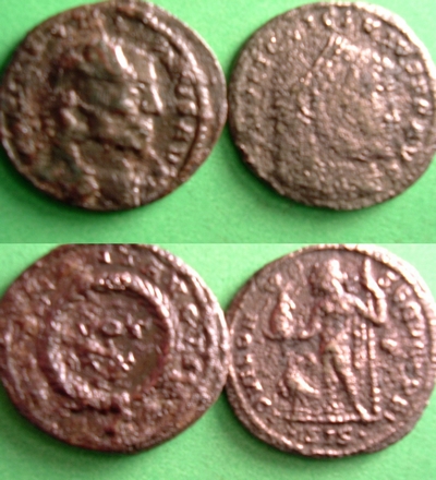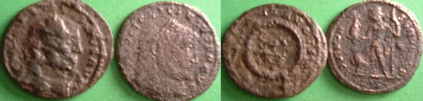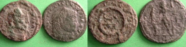 After 12 hours, some minimal softening of the encrustations. Bare metal showing in places on the Licinius.