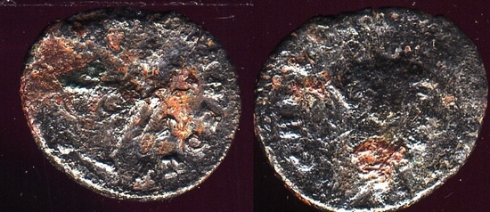 On the above coin, even though the scan doesn't show it well, there were encrustations on the face, back of the neck, covering STA, and some between 11 and 12 o'clock on the obverse. On the reverse, the encrustation could be found on the figure, especially the lower body, below the line of ground, the sceptre, and pretty much all along the legend.