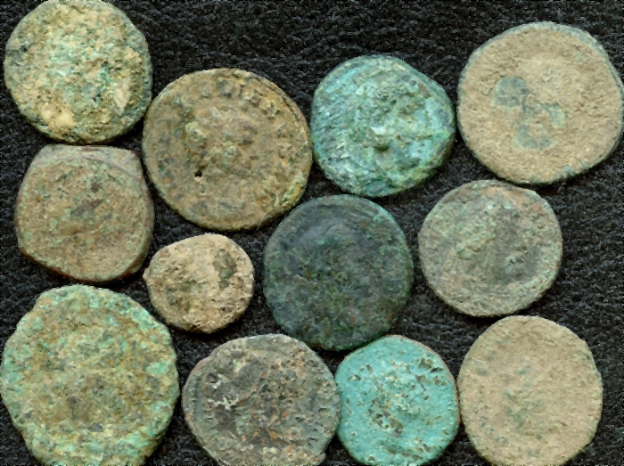 is particularly nasty, so we'll see how it goes. The filters I had running were nearly black after adding 100 or so new uncleaned coins, so I had to change them last night around 2am after a 10 hour shift (and I haven't had a day off for nearly 3 weeks), so I'm surprised I haven't lost more lol. I think one can see the difference in the amount of dirt easily enough, and the coins were only soaking for just less than 24 hours. The Byzantine had a partial patina to begin with, so it wasn't my technique that removed the patina (see scan). Believe it or not, there are a couple coins that I would consider ready for finishing... just after 24 hours of soaking. I'm telling you... this works!. Unfortunately, it works a bit too fast. I have 60-70 coins awaiting attribution, around 50 waiting to be entered into Moneta and flipped, and probably 300 coins still soaking but are ready to be finished. |
